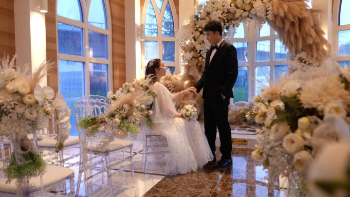 终于到了婚礼当天,这场预告了一年的婚礼,拉开帷幕。如果不告诉你这是婚礼现场,你大概率会以为自己穿越到了外国人的中式变装party。不信?自己看!