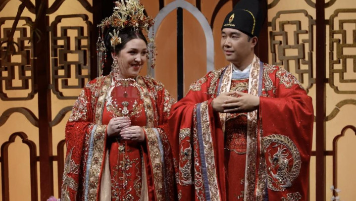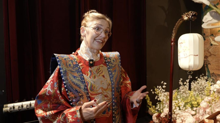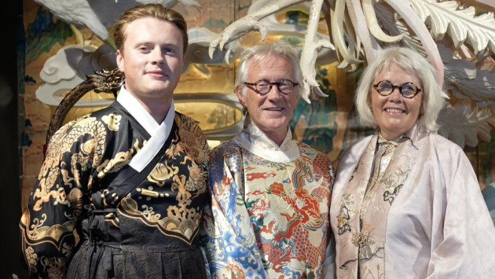 Helen(王达丈母娘):“当时我们就问王达,如果我们穿中国传统服饰,中国客人会不会觉得奇怪,要是显得突兀或者不合时宜,我们就不穿了。但他说,不会的,妈妈,大家会觉得挺有意思的。然后我就想,那好吧,对我们来说就很有意思,穿上中式的衣服就感觉能够沉浸式体验某种古老的文化。”