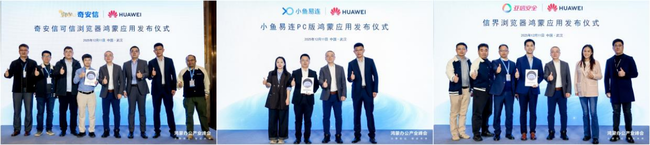 值得关注的是,本次峰会专门设立了鸿蒙应用发布仪式。奇安信推出首款实现全功能鸿蒙化的企业级可信浏览器;小鱼易连发布PC版,打造“高安全、超融合、全连接”的全栈视频会议解决方案;亚信安全发布专为企业设计的信界浏览器,强化鸿蒙生态用户的业务安全边界。这些应用的集中上线,进一步丰富了鸿蒙商用办公的应用生态。